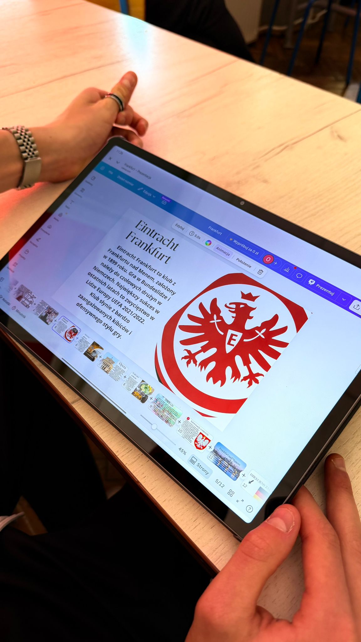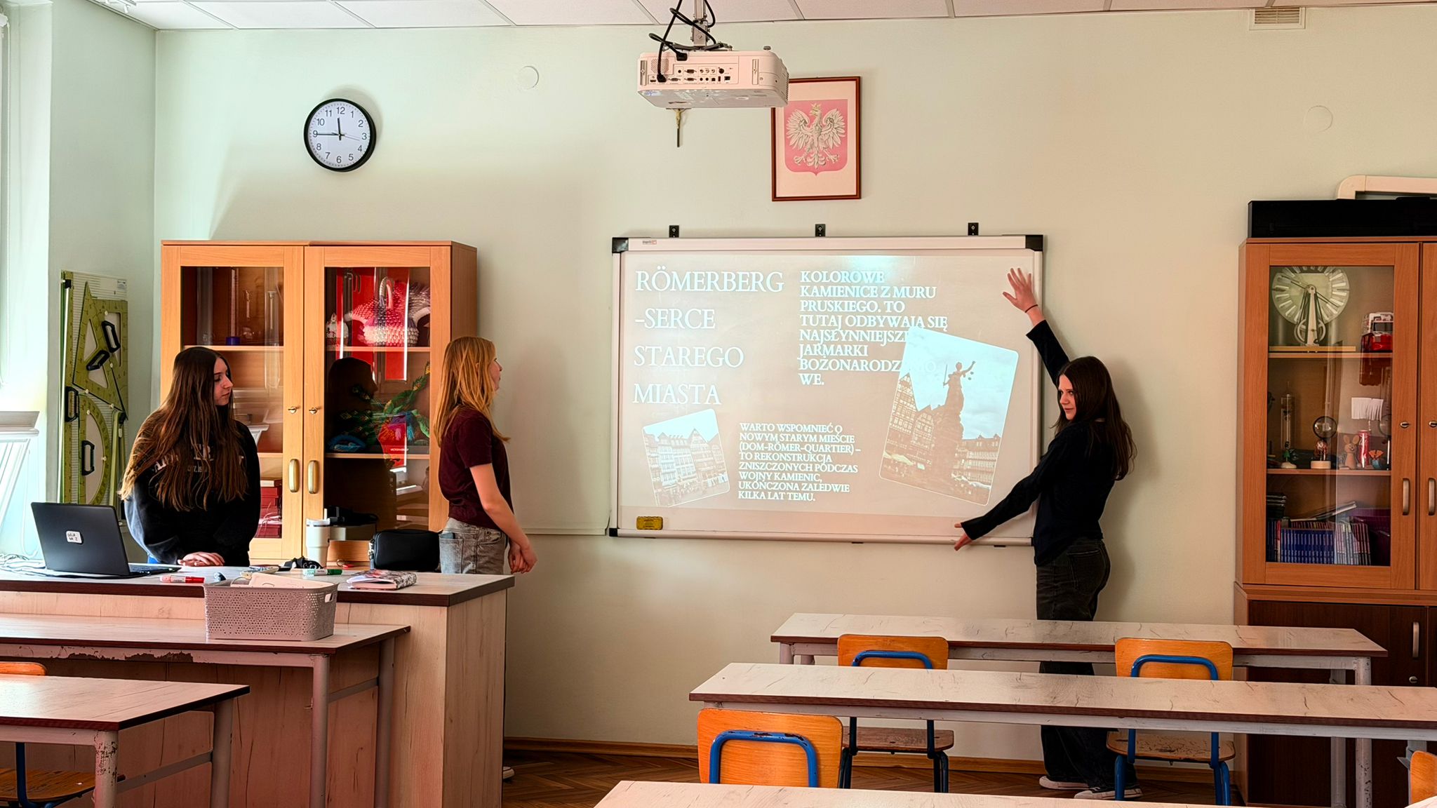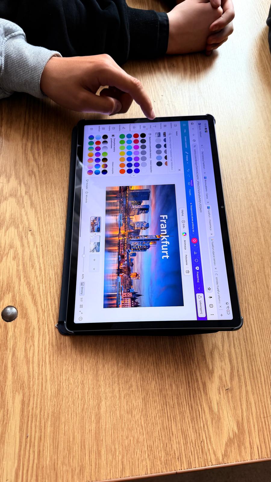 W klasie 8a naszej szkoły zrealizowano projekt edukacyjny na lekcjach języka niemieckiego pod hasłem „Frankfurt am Main – nicht nur Flughafen!”, który łączył rozwój kompetencji językowych, cyfrowych oraz społecznych. Działania te wpisują się w założenia programu Erasmus+ oraz standardy edukacji włączającej. W ramach projektu uczniowie pracowali w grupach nad przygotowaniem prezentacji multimedialnych w programie Canva, przedstawiających Frankfurt nad Menem jako miasto o bogatej kulturze, historii i znaczeniu gospodarczym – wykraczające poza skojarzenie wyłącznie z lotniskiem. Prezentacje zawierały elementy kulturoznawcze, a ich treść była częściowo opracowana w języku niemieckim oraz polskim.
