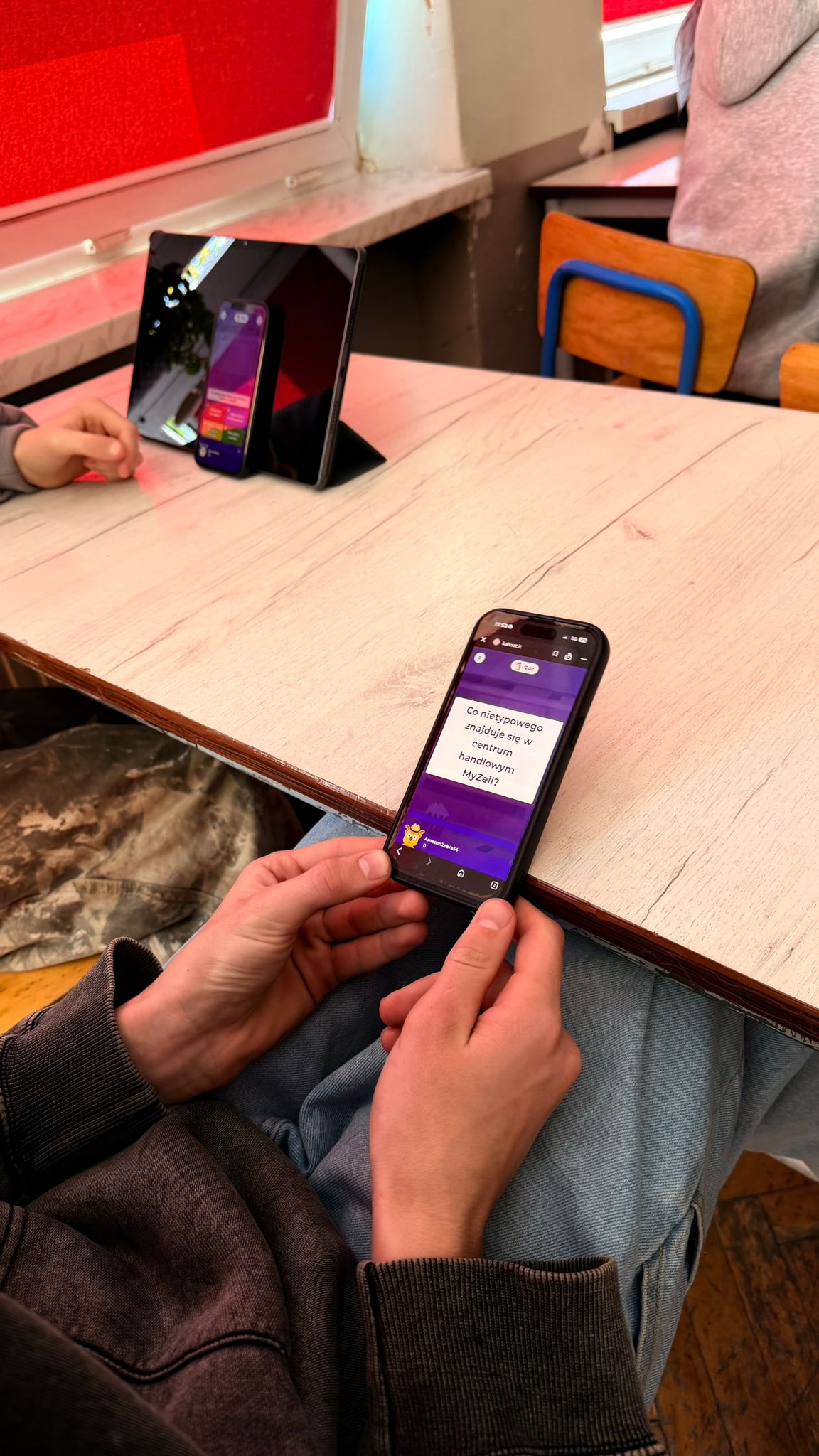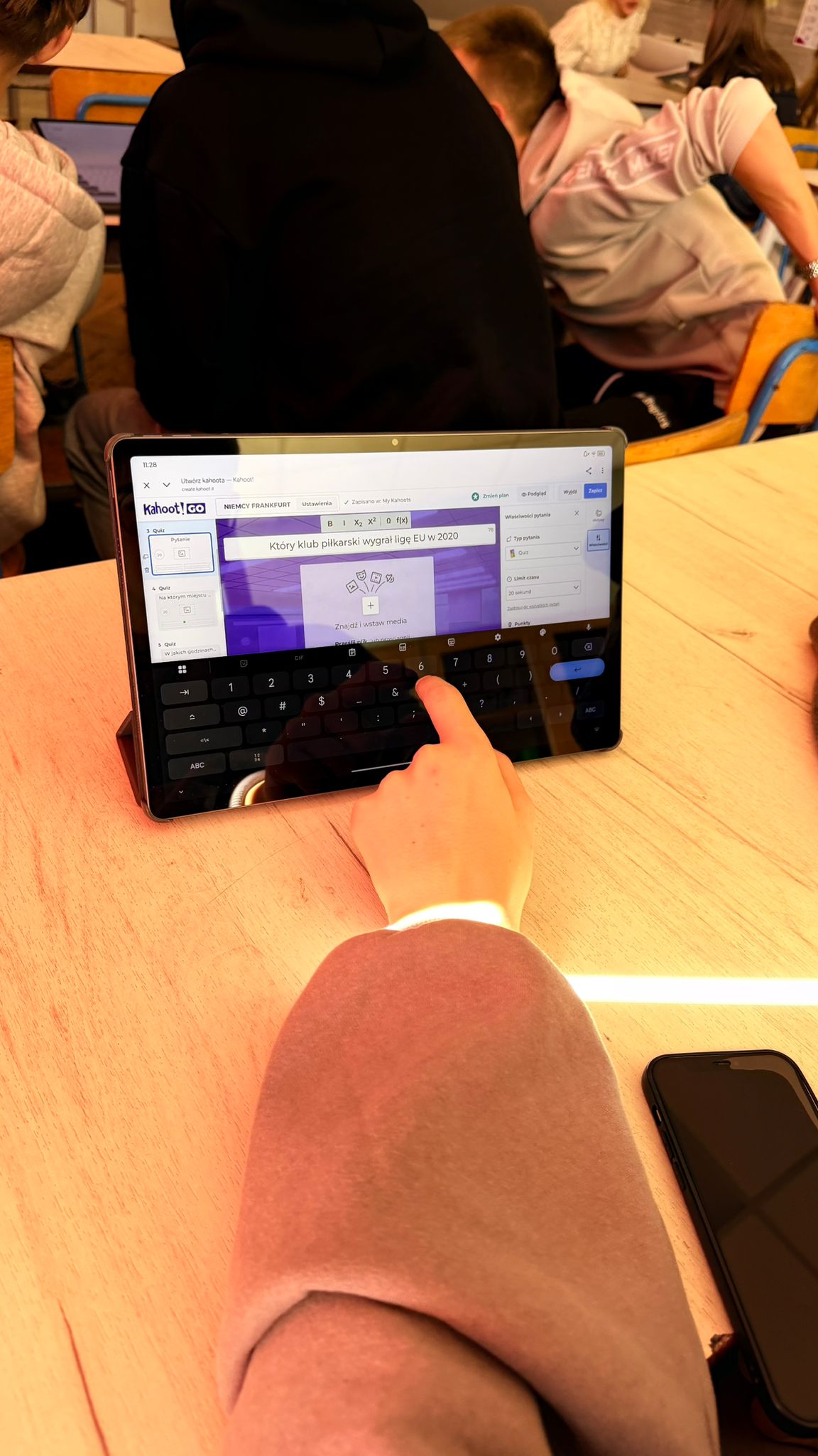 Kolejnym etapem było przygotowanie interaktywnych quizów w aplikacji Kahoot!, które pozwoliły uczniom utrwalić wiedzę oraz zaangażować całą klasę w aktywną naukę poprzez zabawę. Dodatkowo uczniowie tworzyli elementy graficzne z wykorzystaniem narzędzi AI dostępnych w Canvie, rozwijając kreatywność oraz umiejętności projektowe.