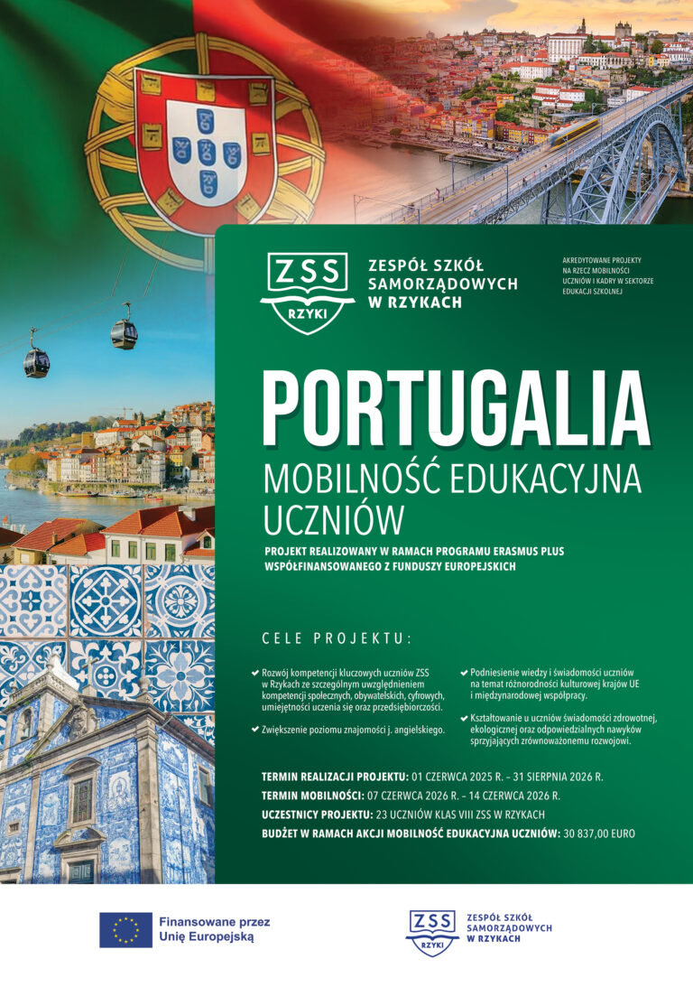 Erasmus+ Plakat rekrutacja do projektu „Mobilność edukacyjna uczniów – Portugalia”