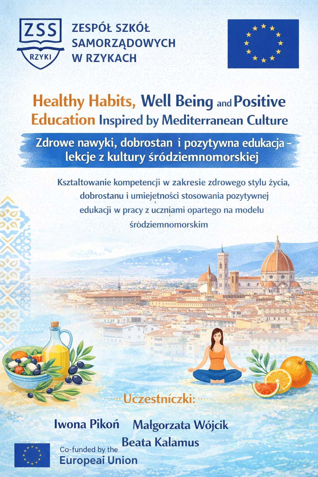Szkolenie „Healthy Habits, Well‑Being and Positive Education Inspired by Mediterranean Culture” („Zdrowe nawyki, dobrostan i pozytywna edukacja – lekcje z kultury śródziemnomorskiej”) to tygodniowy kurs doskonalący kompetencje nauczycieli w zakresie zdrowego stylu życia, dobrostanu i pozytywnej edukacji opartej na modelu śródziemnomorskim. Uczestnicy poznają praktyczne metody wspierania równowagi emocjonalnej, budowania pozytywnego klimatu w klasie oraz rozwijania u uczniów nawyków sprzyjających zdrowiu i harmonii.