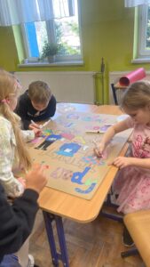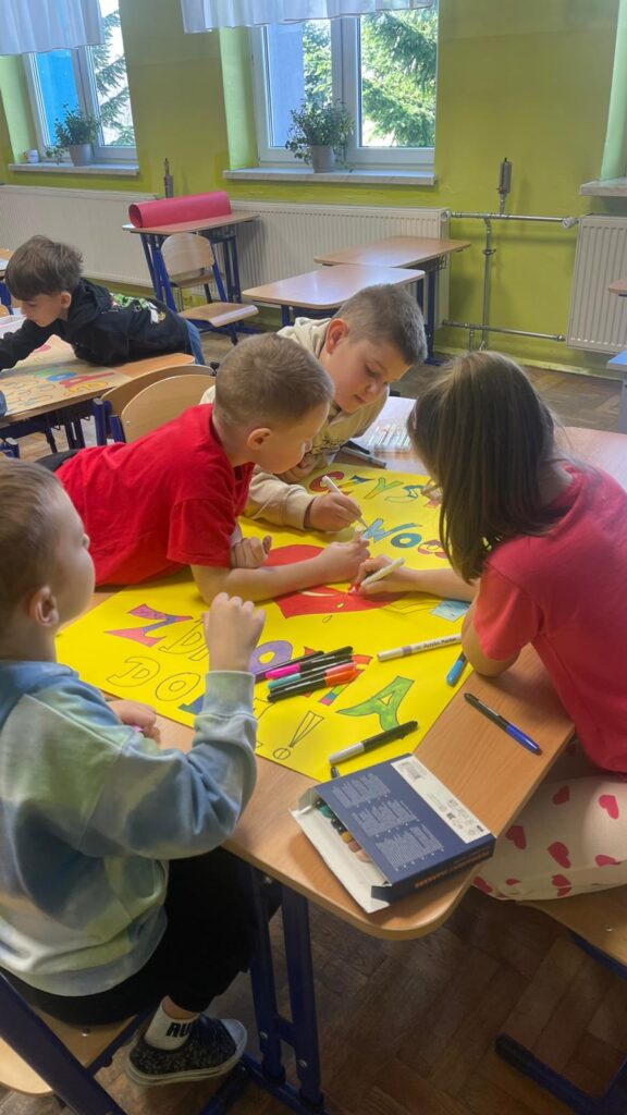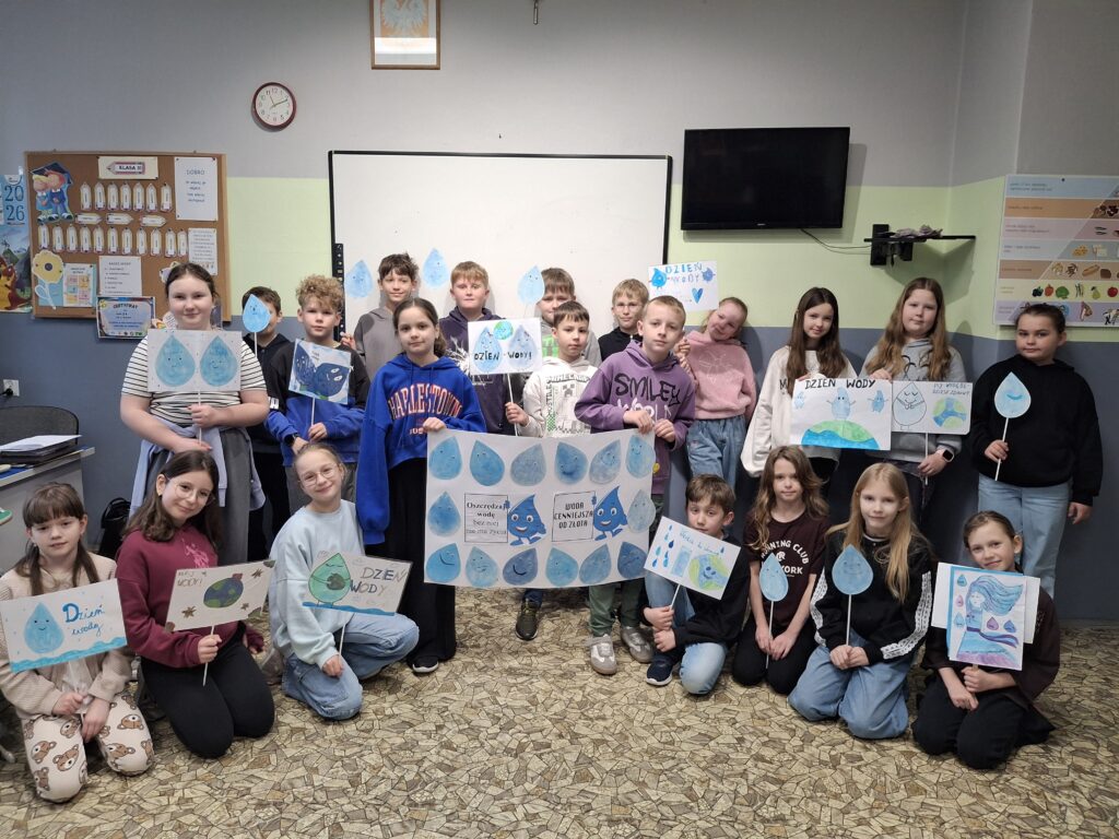 W ramach obchodów Światowego Dnia Wody uczniowie klasy 1a realizowali projekt promujący picie wody. Po obejrzeniu filmu edukacyjnego tworzyli własne hasła i plakaty, wykorzystując również materiały z recyklingu. Pracowali w zespołach, rozwijając współpracę, kreatywność oraz umiejętność podejmowania decyzji. Zajęcia miały także wymiar praktyczny – uczniowie pili wodę, utrwalając zdrowe nawyki.