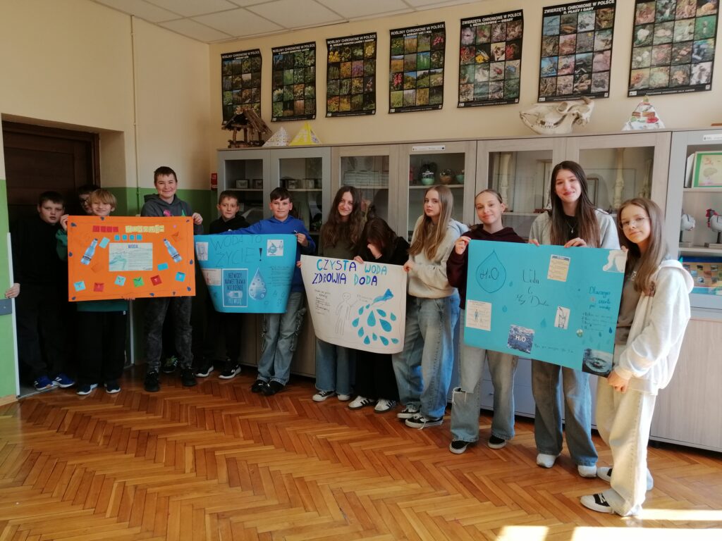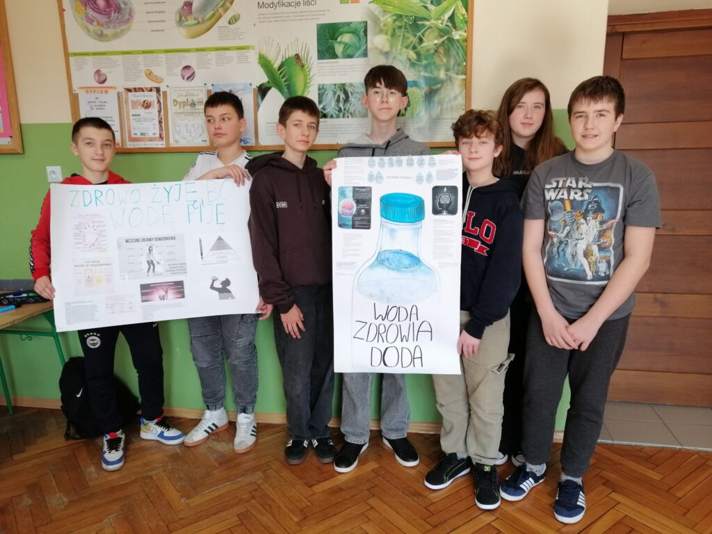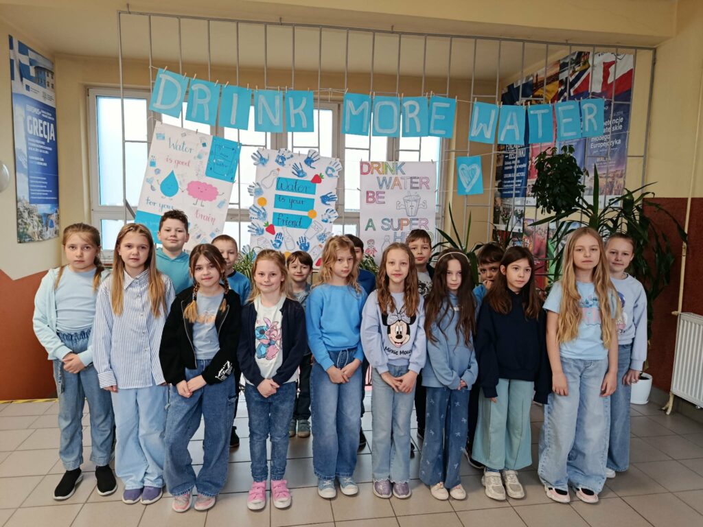 Uczniowie przez cały tydzień brali udział w akcji „Zamień napój na wodę”, przynosząc do szkoły wyłącznie wodę mineralną. Każda klasa przygotowała plakat promujący picie wody, który ozdobił drzwi sal lekcyjnych. Najmłodsze klasy wykonały dodatkowo prace w języku angielskim, a klasa 2a przeprowadziła krótką akcję promocyjną zachęcającą do picia wody.