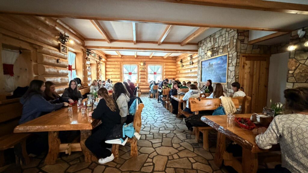 Po krótkim czasie przeznaczonym na zakup pamiątek grupa udała się na obiad. Następnie uczniowie wyruszyli na spacer Wąwozem Homole – jedną z najpiękniejszych i najbardziej malowniczych tras w Pieninach. Przejście wąwozem zajęło około 45 minut i pozwoliło dzieciom podziwiać wyjątkowe formacje skalne oraz przyrodę tego obszaru.